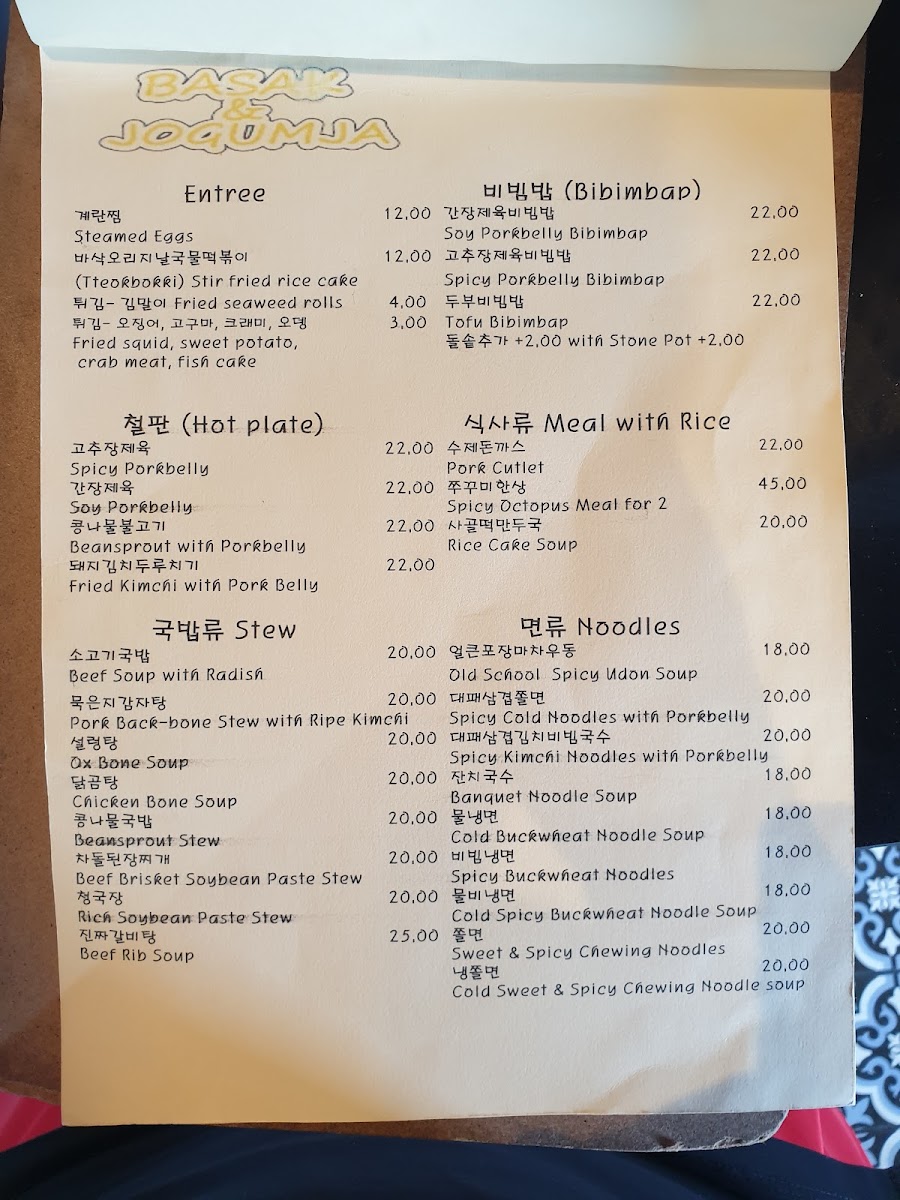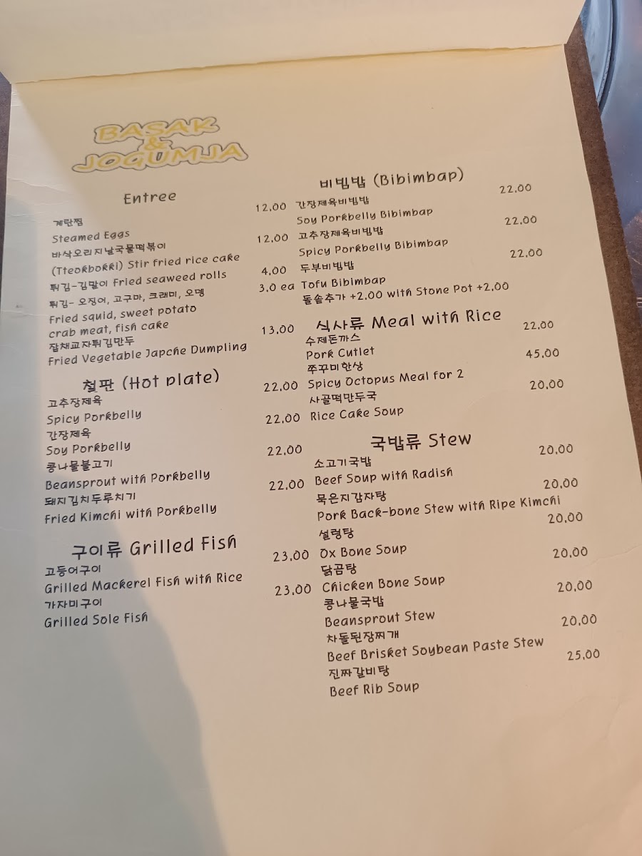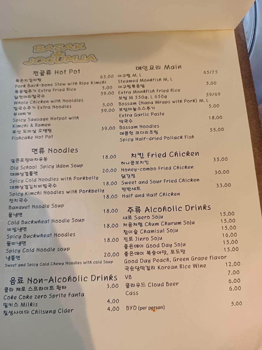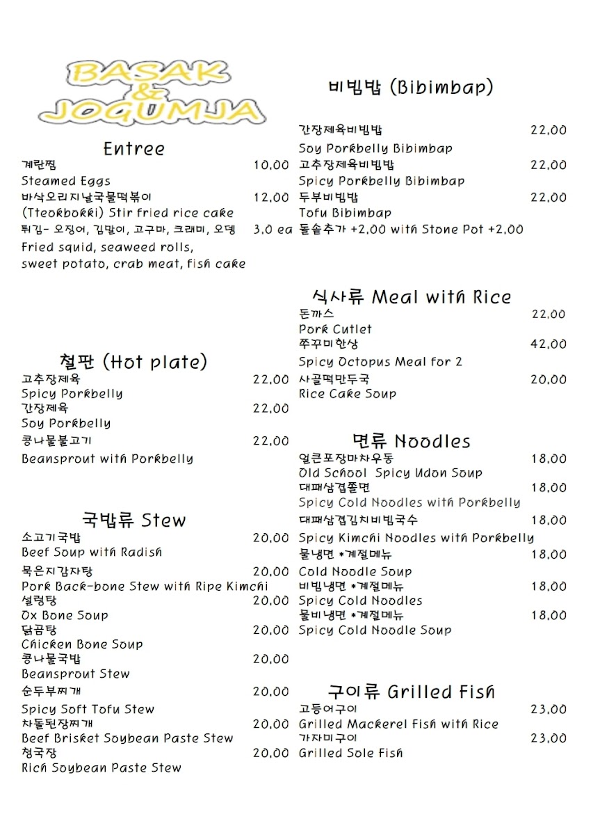 Overall, Basak & Jogumja offers a variety of dishes that cater to all tastes and preferences, from light entrees to hearty stews and satisfying mains, with a wonderful selection of drinks to complement the meal. Whether you're in the mood for something spicy, savory, or sweet, there's something on the menu to suit every craving.