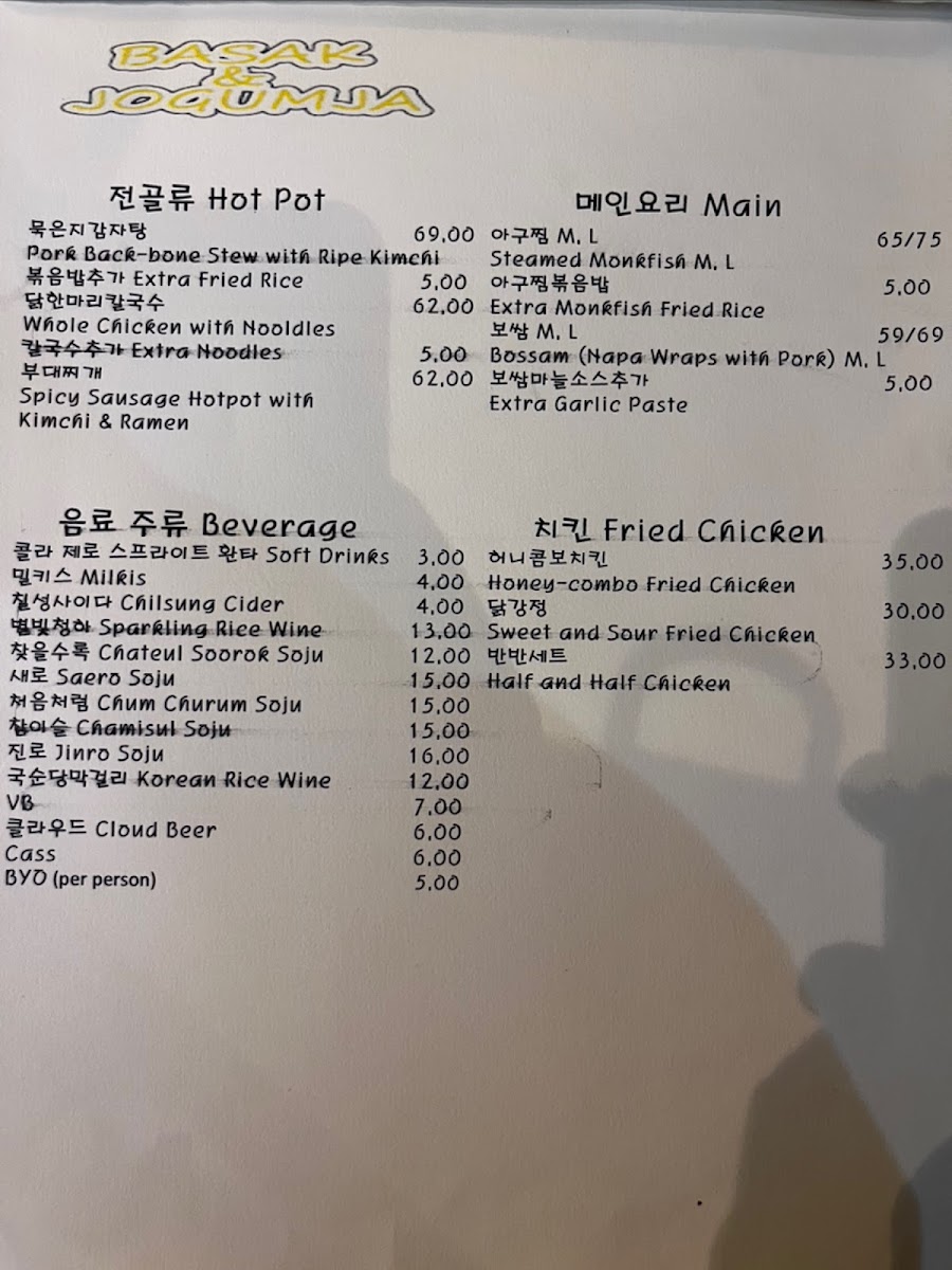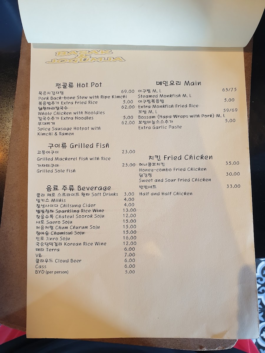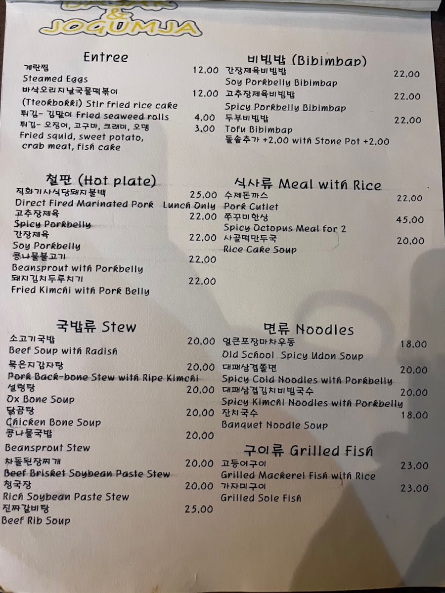 Overall, Basak & Jogumja offers a variety of dishes that cater to all tastes and preferences, from light entrees to hearty stews and satisfying mains, with a wonderful selection of drinks to complement the meal. Whether you're in the mood for something spicy, savory, or sweet, there's something on the menu to suit every craving.